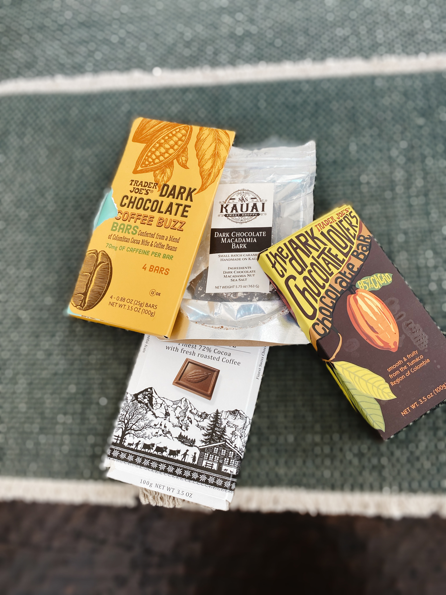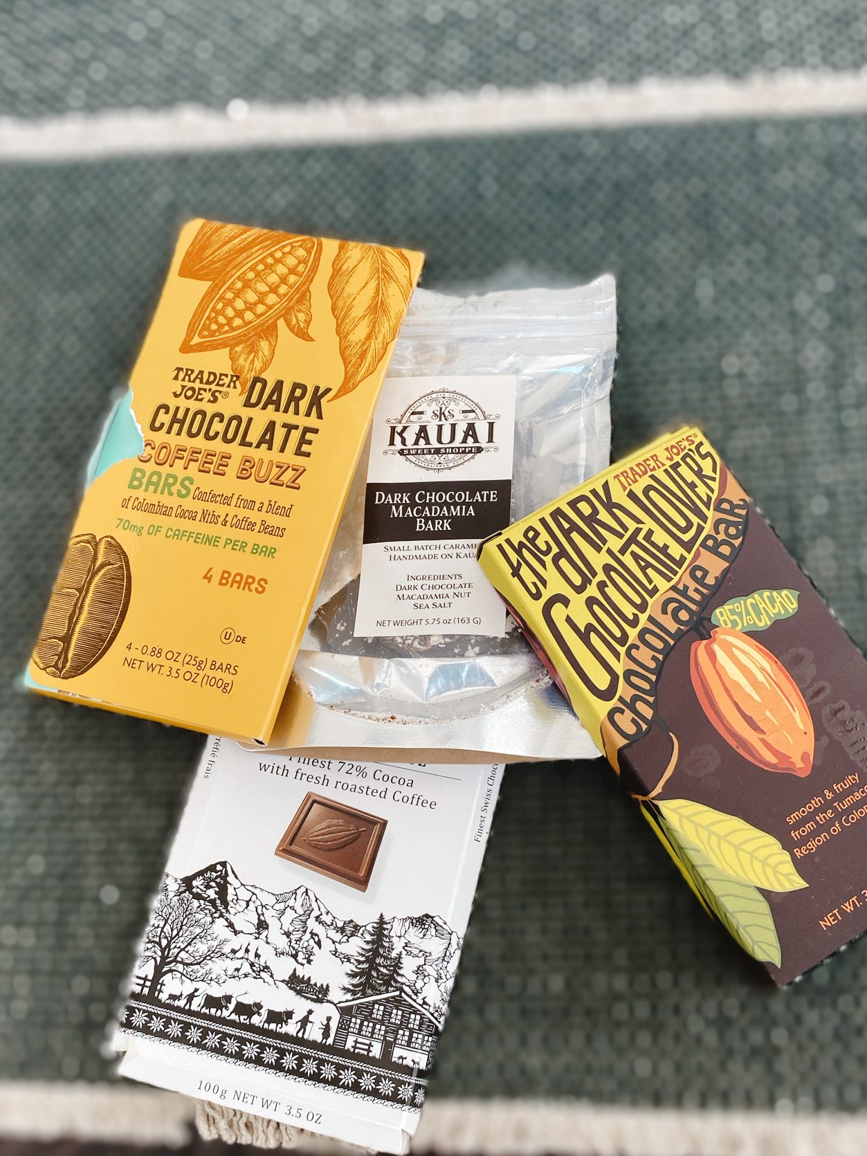 - Mood Booster: Dark chocolate has been shown to have a positive impact on mood. The flavonoids in dark chocolate have been found to help reduce stress and anxiety, while also boosting feelings of happiness and well-being.